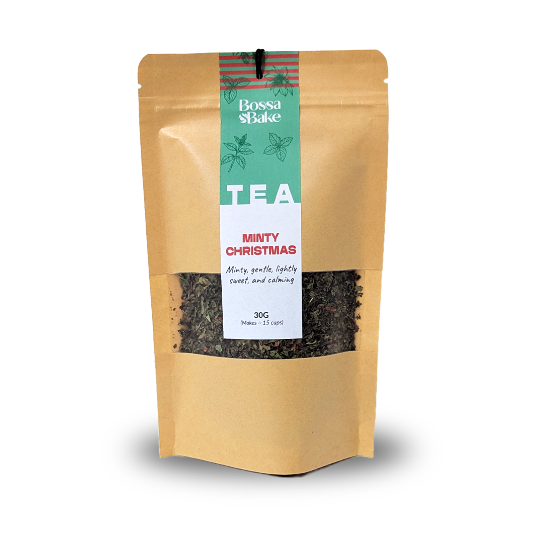 Minty Christmas pairs beautifully with Chocotine for a mint–orange–chocolate moment, or with Choco Hazel for a wintery chocolate–mint pairing. It also shines alongside buttery treats like shortbread cookies, vanilla scones, peppermint chocolates, or your favourite festive pastries. For a true Bossa & Bake twist, enjoy it with our Guava Bites for a refreshing tropical spark, or with Casa de Caramelo caramel candies for a cozy sweet finish.